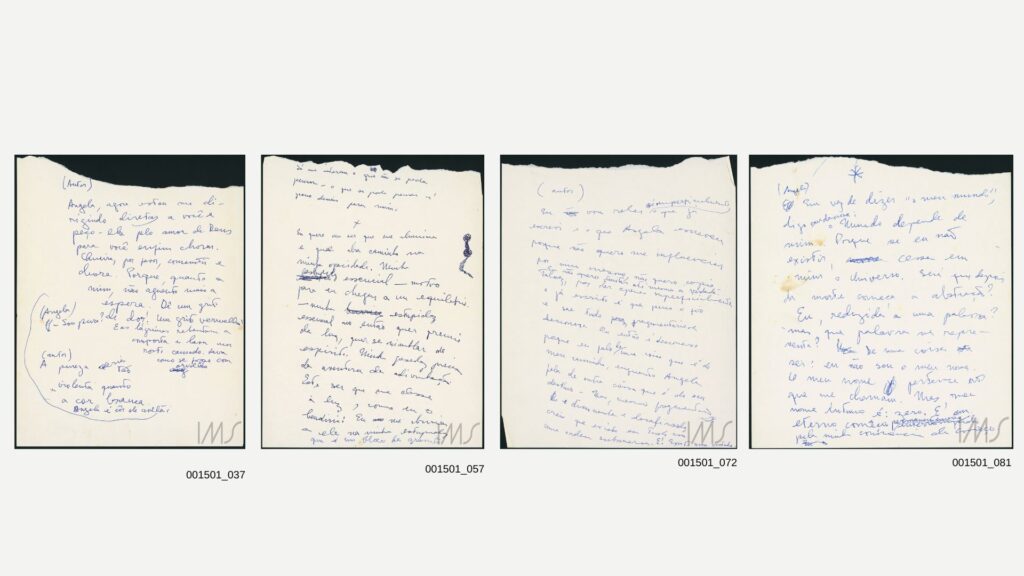 The manuscripts that make up the dossier A Breath of Life – held by the IMS since 2018 – are placed at the center of analysis and, through unediting, a critical space is carved out less with imbroglios from the narrative and from the comparison with what is published and more with what is confused, incomplete, and noisy in itself.